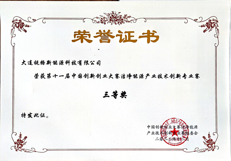 第十一屆中國(guó)創(chuàng)新創(chuàng)業(yè)大賽潔凈能源產(chǎn)業(yè)技術(shù)創(chuàng)新專(zhuān)業(yè)賽三等獎(jiǎng)