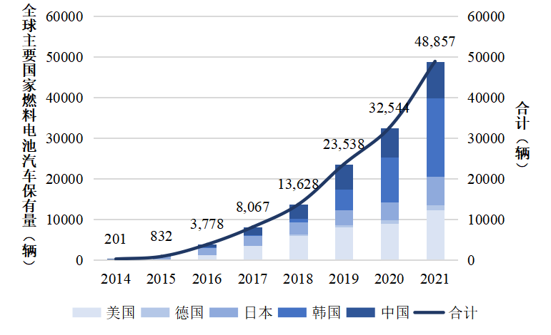 全球主要國(guó)家燃料電池汽車(chē)保有量