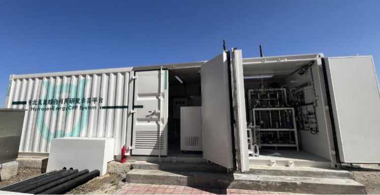 項目位于張家口市張北縣的華強新能源清潔能源綜合開發示范園區內,項目配備了20Nm3/hPEM電解水制氫設備,型號:HAE1100。項目將氫能制、儲、發電儲供熱等功能系統結合,集成于一個集裝箱內,實現了氫能的高效離網應用與零碳示范。